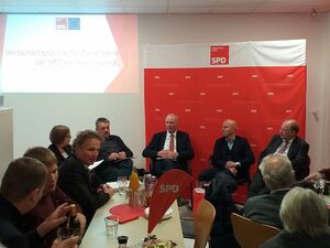 Im Anschluss daran fand die Neugründungsveranstaltung der wirtschaftspolitischen Denkfabrik statt. Moderiert wurde die Veranstaltung von Anja Dargatz vom Managerkreis der Friedrich-Ebert-Stiftung. Eberhard Schneider prangerte einmal mehr die Renditejagd der Unternehmen an, welche sich „nur noch für ihre Kennzahlen interessieren und darauf aufbauend Standortentscheidungen treffen, ohne den Mensch im Mittelpunkt des unternehmerischen Handelns zu berücksichtigen“. Kai Thiemann, Geschäftsführer der GLS-Bank prangerte unter anderem die Sozialisierung der Bankenschulden als „riesen Sauerei“ an und sprach von einer Immobilienkrise in Deutschland. Zusammenfassend war es eine gelungene Auftaktveranstaltung mit zahlreichen Gästen.