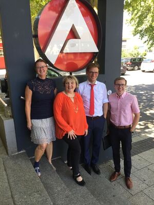 Bei der Bundesagentur für Arbeit wurden die Bundestagsabgeordnete und der Kreisvorsitzende von Lars Weber, Leiter der Außenstelle in Waghäusel und der Geschäftsführerin Frau Michaela Frei begrüßt. Weber und Frei informierten über aktuelle Themen. Zahlreiche Freistellen gebe es im Handwerk und den sozialen Berufen, wie der Pflege. Die Streichung des Schulgeldes bei der Pflegeausbildung wurde in diesem Zusammenhang begrüßt.